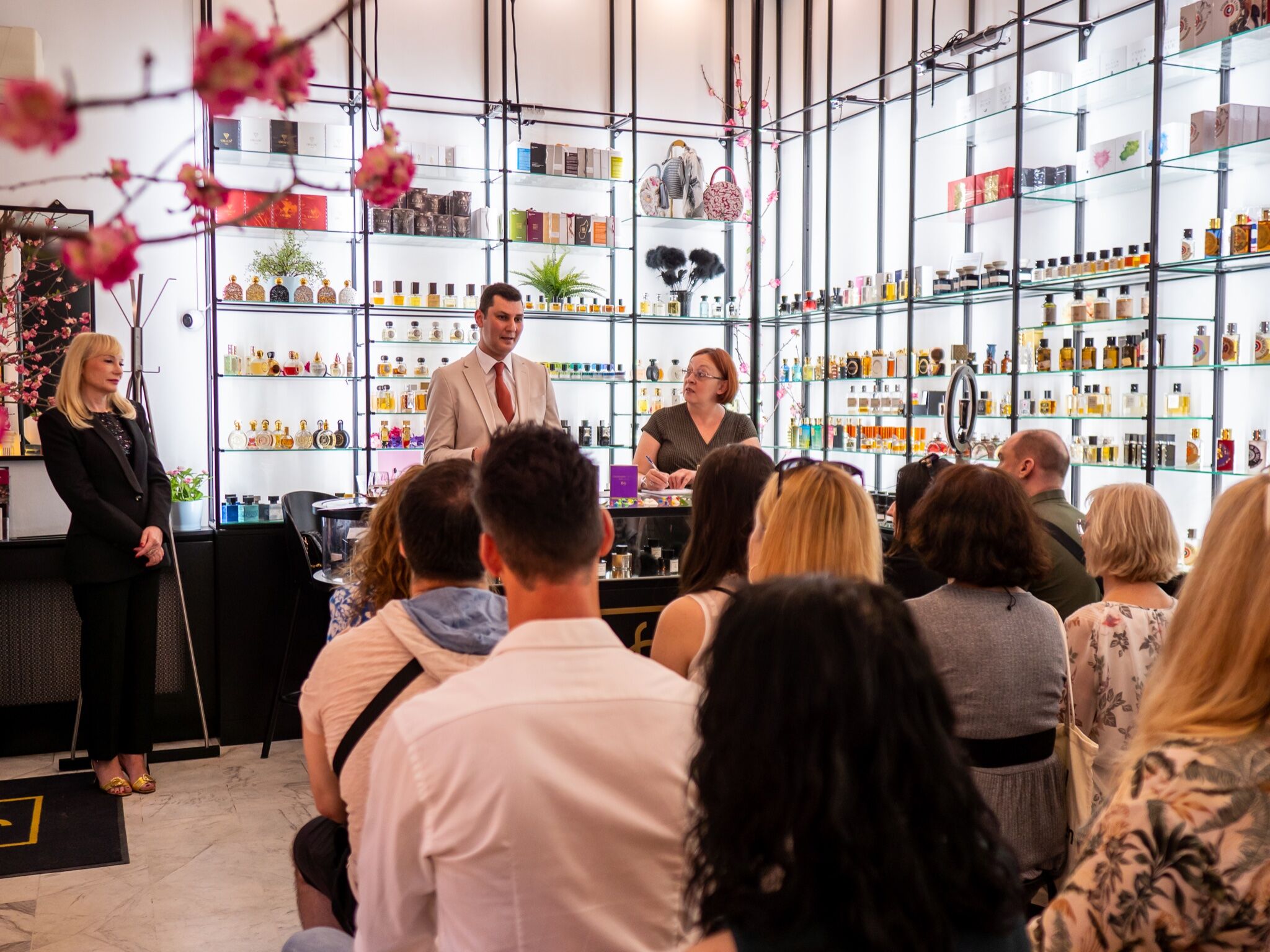 A főszereplőt számos kérdéssel bombázó közönségnek hála a bemutató kifejezetten interaktívra sikerült. Megtudhattuk többek között, hogy a parfümök üvegjeit Dicas egyik legjobb barátja, egy tervező álmodta meg, és az illatszerek tárolására használt ókori görög vázákat idézik. Magukkal az illatokkal több éven át dolgozott a pireuszi születésű, de Olaszországban élő parfümőr, és megszámlálhatatlan mennyiségű minta landolt a kukában, mire elnyerték végső összetételüket.