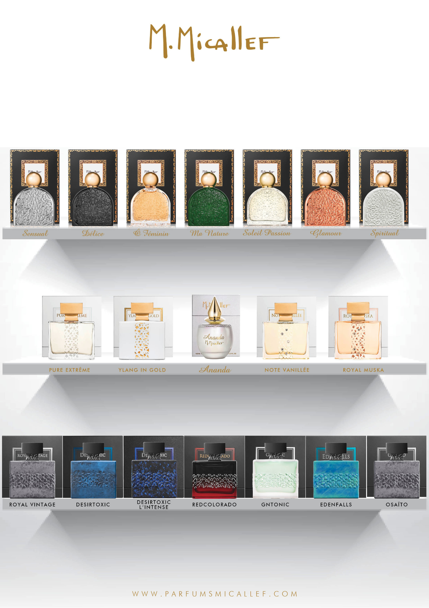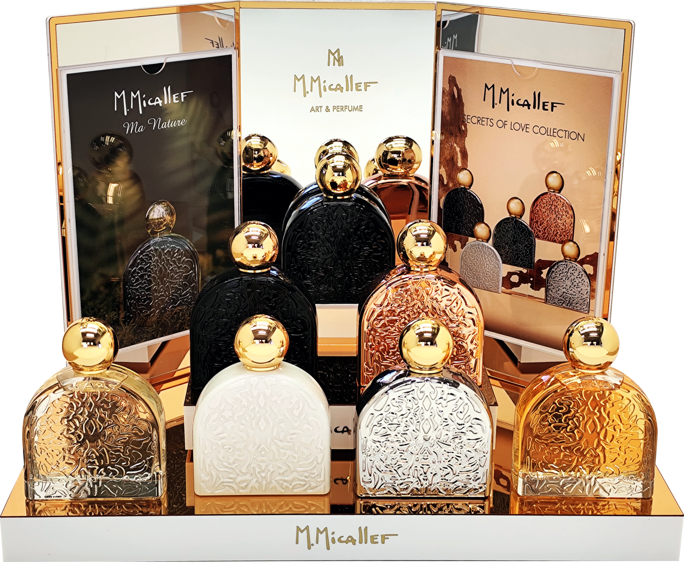 A francia parfümök központjából, Grasse-ból származó M.Micallef a finom alapanyagokat ötvözi Martine Micallef kreativitásával, gazdag kulturális örökségével és művészi víziójával. Valamennyi üvege egyedi alkotás, Swarovski kristályokkal díszített, kézzel festett, arany bevonattal és ékszerszerű felületekkel díszített üvegcsék, amelyek inkább műalkotásoknak vagy értékes tárgyaknak tűnnek, mint egyszerű parfümös üvegcséknek.