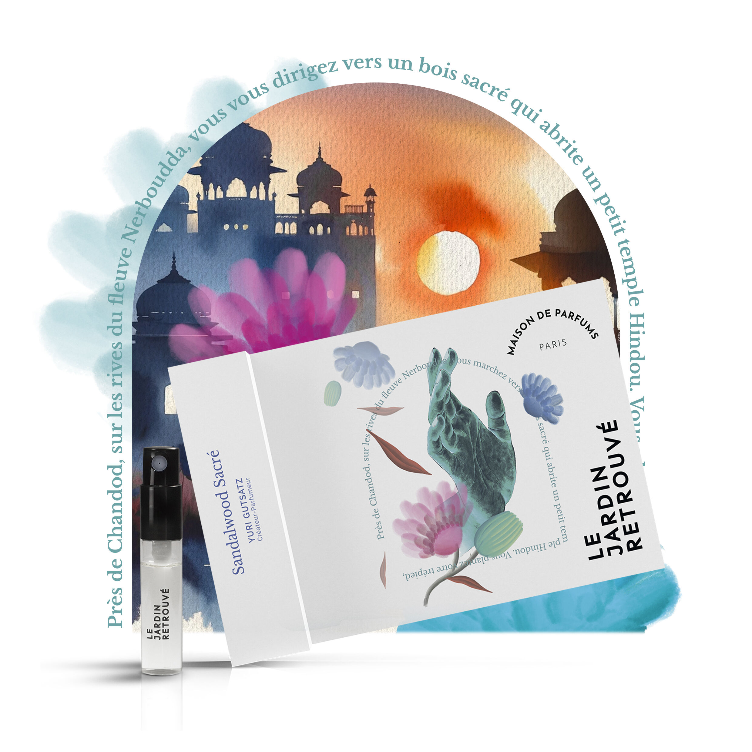 Chandod közelében, a Narmada folyó partján egy szent liget felé sétálsz, ahol egy kis hindu templom található. Felállítod a festőállványodat, előveszed a rajzeszközeidet, és belekezdesz egy vázlatba. Hirtelen egy parfüm púderes jegyei ütik meg az orrod. Szantálfa, pacsuli, tölgymoha és pézsma, majd ajándékként koriander, petitgrain és narancsvirág. A hely szelleme szól hozzád?
