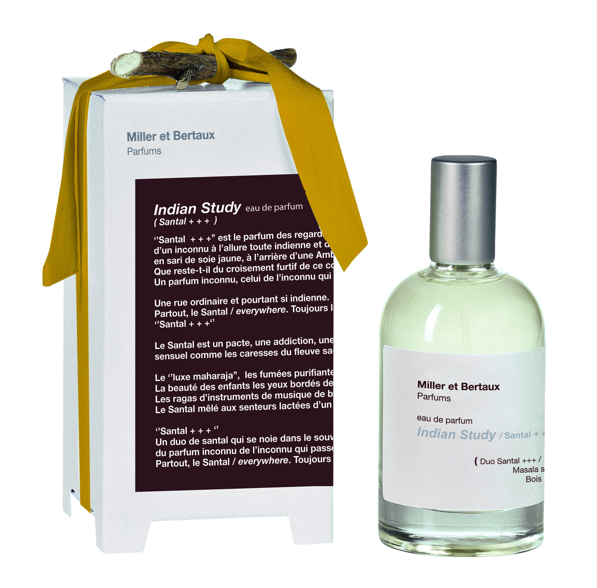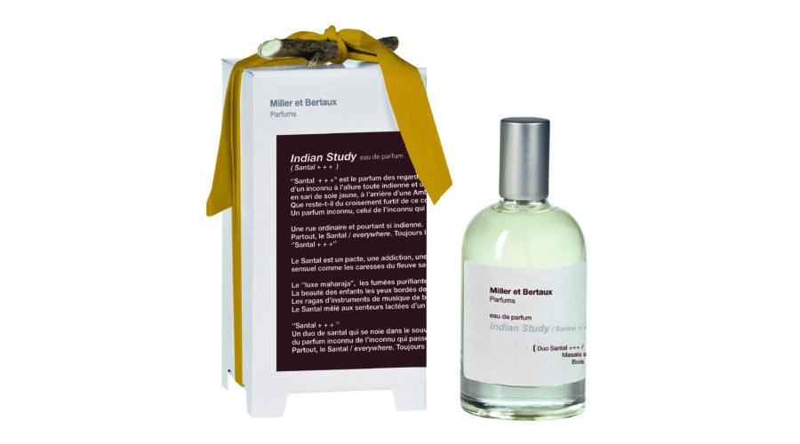 Az Indian Study / Santal +++ Miller és Bertaux tizenharmadik illatos alkotása – melyet a szantálfa krémes szépsége előtti tisztelgésnek szenteltek – egy háromdimenziós fűszeresen fás illatban.