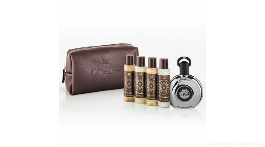 Férfiak számára készült utazó szett. Meleg kávészínű neszeszerben az ikonikus Royal Vintage Eau de Parfum 30 ml-es változatát tartalmazza testápoló, sampon, hajbalzsam és tusfürdő kíséretében.