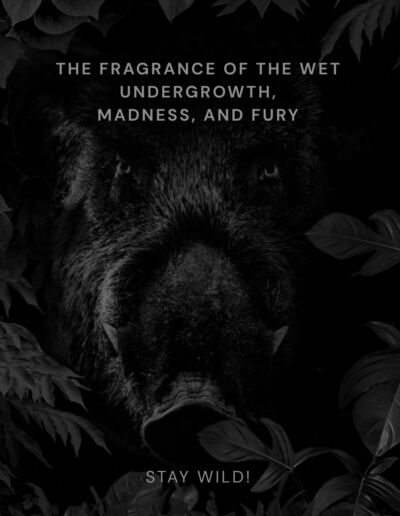 Iszonyú vad csörtetés indul! Hajsza a bódító zöldalmáért. Ha a vaddisznó éhes, nem ismer tréfát. De sajnos mi az útjába kerültünk… Leigáz a fejjegyeiben található almával és az azt felerősítő galbánummal. De szerencsére hamar jóllakik, és innen egy csodálatos metamorfózis indul az illat szívjegyeitől kezdve. A szarvasgomba, a moha és a tűlevelű jegyek együttese egy puha családi vadlakba hívnak bennünket, ahol a többi süldő testvérünkkel a meleg vaddisznómamához bújunk szorosan. A leszáradásban a gyönyörű száraz fa, szőrme és bőr illata a simogató vetiverrel szinte mint az illatos dohány, bensőséges és szeretetteljes családi fészek érzését kelti.